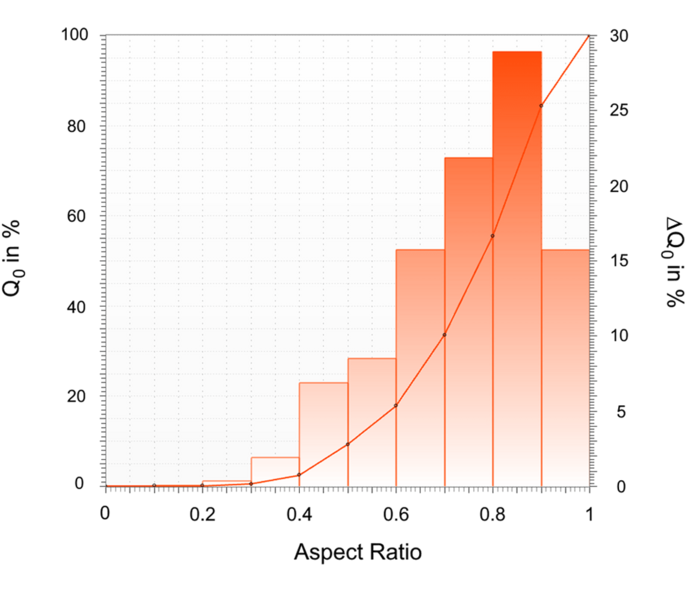 It is obvious that for this example the smaller particles deviate more often from the spherical shape than the larger ones. However, we can also find a range around 750 µm particle size, where particles with a smaller aspect ratio also occur more frequently.
