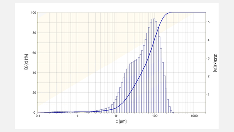 Basically two different types of measurement are possible. With wet measuring, the sample material is dispersed in a suitable liquid and continuously transported through a closed circuit through the measuring cell. Whereas during the dry measurement powder is blown through the measurement cell and then vacuumed off. During such a dry measurement, after the selection of the standard operating procedure (SOP) a background measurement is automatically performed without sample material. Afterwards a vibratory feeder transports the previously added to the sample compartment material perfectly to the measuring cell, whereas the material is accelerated with pneumatic forces. The software automatically adjusts the needed sample amount. Additionally the software controls the pressure of the used air current, which influences the dispersion, i.e. the degradation of agglomerates in single particles, directly prior to the measurement. Ensuing, the software calculates automatically the particle size distribution and a summarized report can be generated. The duration of the entire measurement process, including the calculation - depending on each individual sample - is typically 30 seconds up to approximately two minutes. With the new particle sizer, particle size analyses are a simple task – for professionals as well as for newcomers – and this in all fields of application.