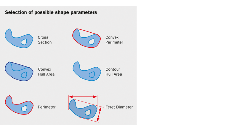 Just choose which statement is of interest to you: the Circularity in regards to the Minimum Feret Diameter, the aspect ratio, applied on the porosity, or the convexity as a function of the particle Cross Section.