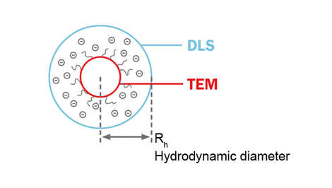 Since this layer influences the movement of the particle, is the measured so called hydrodynamic particle diameter with dynamic light scattering (DLS) mostly above the diameter of that measured for example with a transmission electron microscope (TEM). The thickness of the layer depends on various factors, such as the electrical conductivity of the liquid.