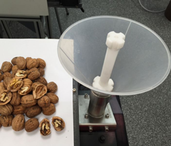 Besides the result, the needed time for the comminution always is a major factor. In order to test this 1 kg of walnuts were comminuted. Limiting element of the sample addition is the diameter of the funnel.