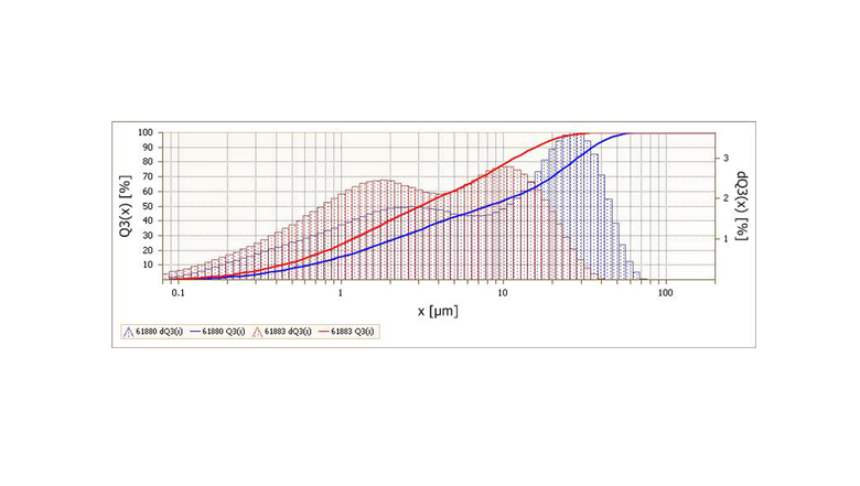Blue curve 3 minute grinding Red curve 5 minute grinding