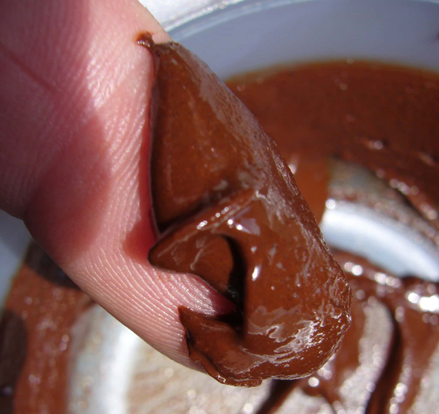 Here you must work with higher temperatures. For this we would recommend a zirconium oxide mortar bowl and pestle. The mortar bowl and also the pestle are to be warmed inside the heating cabinet to 50 °C. The retained energy is sufficient to produce in the 10 minute process period a homogenous mass capable of flowing. Then distinguished palates decide in regards to the quality of the supplied cocoa beans the further use.