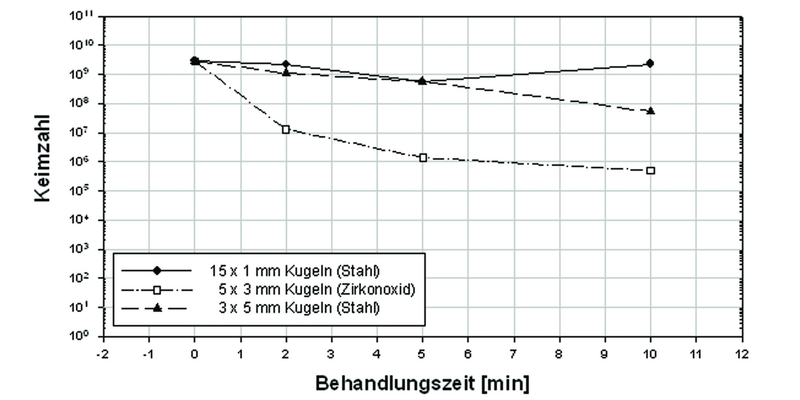 Prior to the decision of utilizing a FRITSCH Mini-Mill PULVERISETTE 23 for this task, was the issue of the careful preparation of dried endospores of the bacillus atrophaeus. Decisive in this case was how the mechanical maceration influences the recovery rate, respectively the survival rate of this micro biological main bacteria. Here various test-runs with altered grinding parameters were performed.