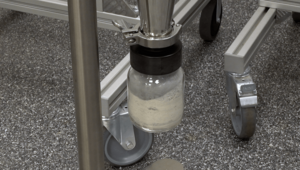 In the second test, a part of the pre-comminuted sample from the PULVERISETTE 19 LARGE, was further processed in the PULVERISETTE 14 premium line. Two hundred milliliters of the sample were comminuted within 38 seconds to a final fineness < 500 µm. The PULVERISETTE 14 premium line was equipped with the cutting rotor, as well as additionally connected to the small volume Cyclone separator, which was operated passively.