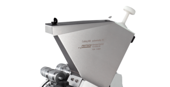 With the FRITSCH standard funnel free-flowing bulk solids as well as straw, films or similar materials can be inserted at full length. Both ends of the plunger of the funnel for long and bulk solids can be utilised: the small end for adding of long goods and the wide end for bulk solids.