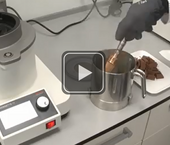 Samples which are difficult to grind such as gummi bears, chocolate or plastic toys can be embrittled with liquid nitrogen for comminution directly in the grinding vessel made of stainless steel 316L. The sample material remains 100 % cold. Just select the special lid with the easily exchangeable single-use sieve insert – the reliable protection against contamination.