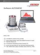 The extensive software AUTOSIEVE enables the automatic sieve evaluation with the Vibratory Sieve Shakers ANALYSETTE 3 PRO and ANALYSETTE 3 SPARTAN and with the Heavy Duty Analytical Sieve Shaker ANALYSETTE 18. AUTOSIEVE is largely self-explanatory and enormously eases the weighing and the evaluation of your sieve analysis.